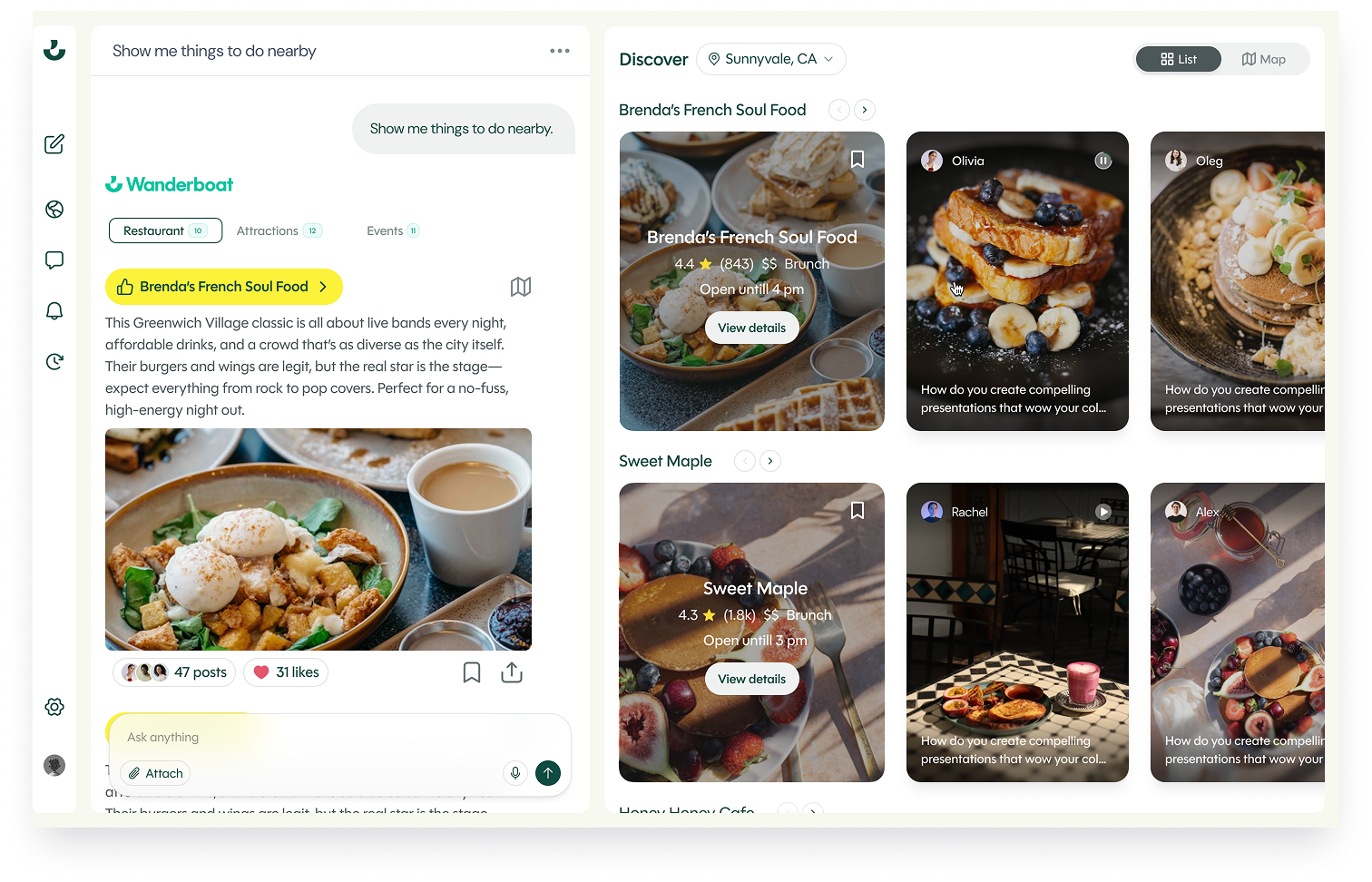 3. In addition to AI recommendations, both the map view and list view display suggested place, and users can quickly switch between them using the “Map & Moments” toggle.